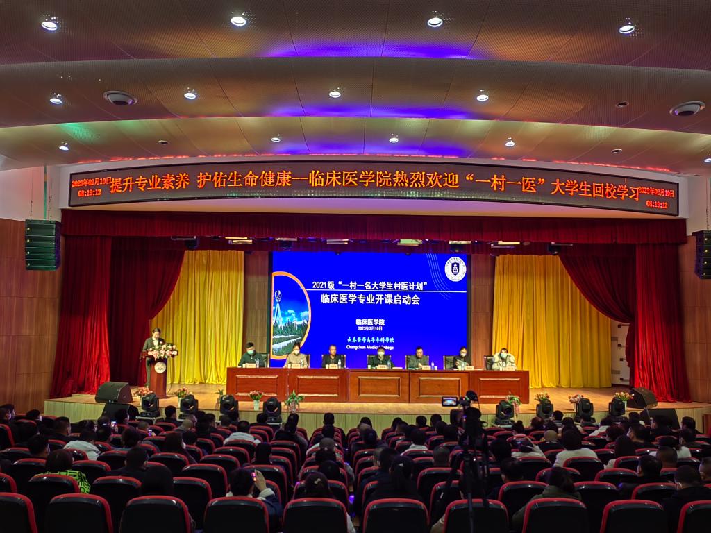 2月10日早8:00,临床医学专业开课启动会于图书馆报告厅准时召开。吉林省卫生健康委基层处副处长姜拥华、长春市卫生健康委基层处处长王平、学生处副处长刘思雅、临床医学院院长杨智源、临床医学院党总支副书记杨敬然、临床医学院学办副主任徐晓玉、临床医学院内科教研室主任杜林参加了大会。