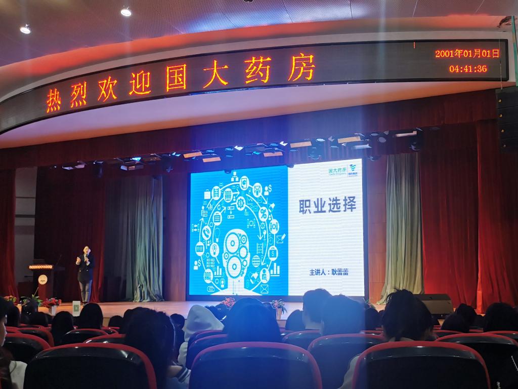 会上,麻泽总经理分享了他从业30年的心得体会,实事求是地分析国家医保政策调整变化给医药市场带来的影响,指出新政策下从业人员职业方向的选择;国大培训部史部长对零售药店的发展历史做了简单介绍;国大人力资源耿总监为青年学生的职业选择提供了宝贵的参考建议;获评“全国最美药师”称号的孟祥月,也是我校优秀毕业生,与全体学生交流了自己从业17年的经验,她鼓励学生们要锚定目标,培养坚持不懈努力追求的品质。
