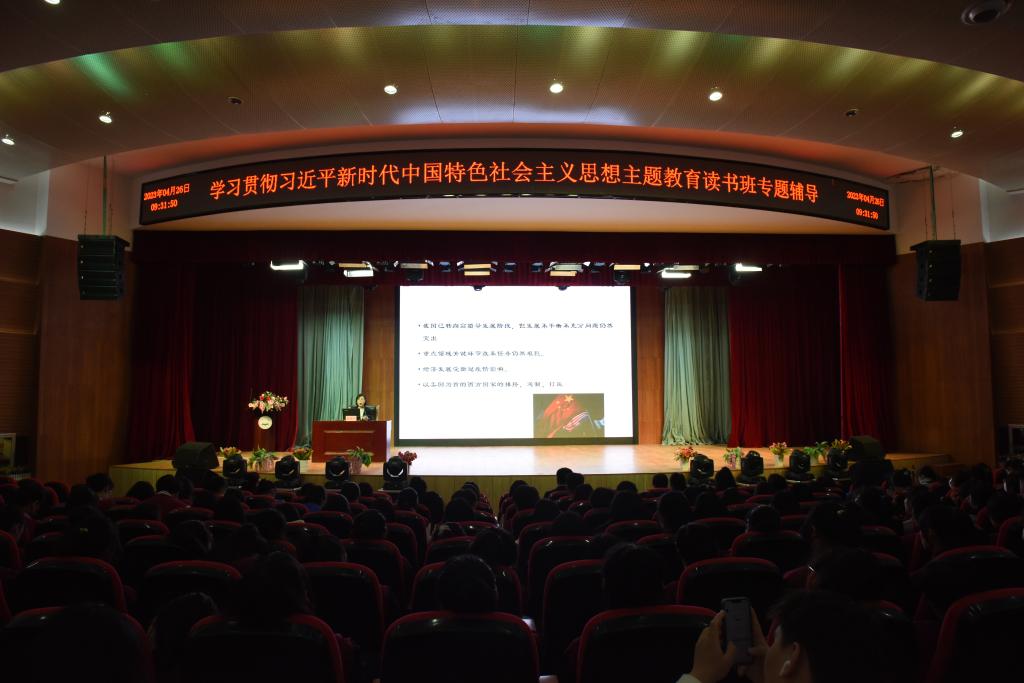 根据学校学习贯彻习近平新时代中国特色社会主义思想主题教育领导小组的工作安排,按照中央2023年主题教育“学思想、强党性、重实践、建新功” 的总要求,学校学习贯彻习近平新时代中国特色社会主义思想主题教育读书班做到学习靠前,引领靠前,抓牢市委党校“送课下基层”活动,校领导与师生共上一堂党课。