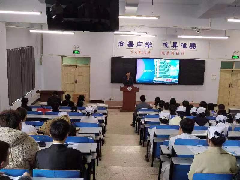 高雅静介绍了临床医学院和护理学院学生目前的就业现状,以及医专学子踏实努力、技能娴熟的学习态度和工作精神,希望双方能够开展全方位合作,让更多医专优秀学子有机会去国金医院发展。李世才对医院的发展历程、规模、工作环境、薪酬福利和管理要求进行了详细介绍,希望通过本次宣讲能吸引到我校更多的优秀人才,为同学们提供更好的施展才能、锻炼自我的机会。