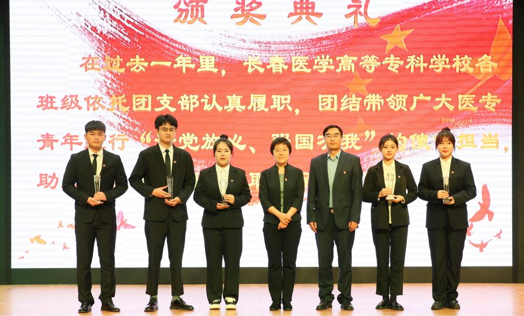五月繁花似锦,青春激情飞扬。为弘扬五四精神,激励广大医专学子挺膺担当、砥砺奋斗,表彰过去一年为共青团事业发展作出贡献的集体和个人,5月17日中午,学校“五四”颁奖典礼暨“同奋斗 共青春”大学生文艺展演在图书馆报告厅隆重举行。长春市卫生健康委员会机关党委专职副书记孟莉、长春市教育局团委书记刘牧,学校党委书记杜影、校长袁兆新、副校长张凯、党委副书记高洪宇等领导出席活动。校院两级相关负责人、学团工作人员及500余名学生代表参加活动,活动由学校团委书记刘思雅主持。