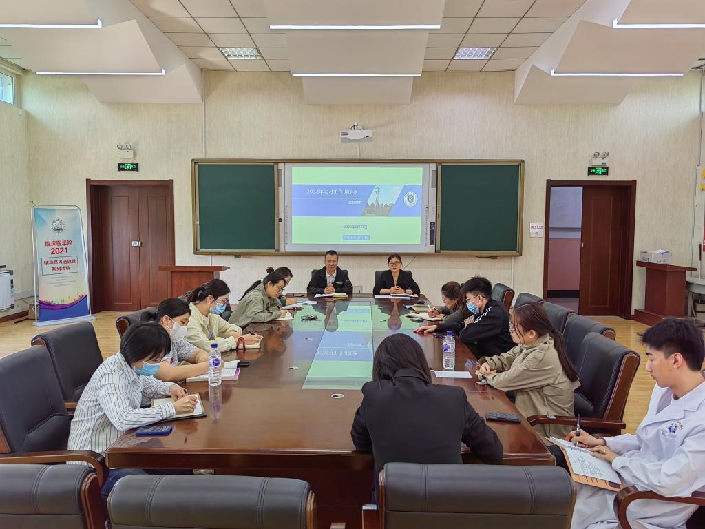 为有序推进临床医学院2023年实习工作,保障学生实习质量,确保毕业实习教学环节落到实处,5月23日中午,临床医学院在善学楼五楼会议室召开实习工作调度会,临床医学院院长杨智源、21级辅导员、实习干事参会。会议由临床医学党总支副书记杨敬然主持。