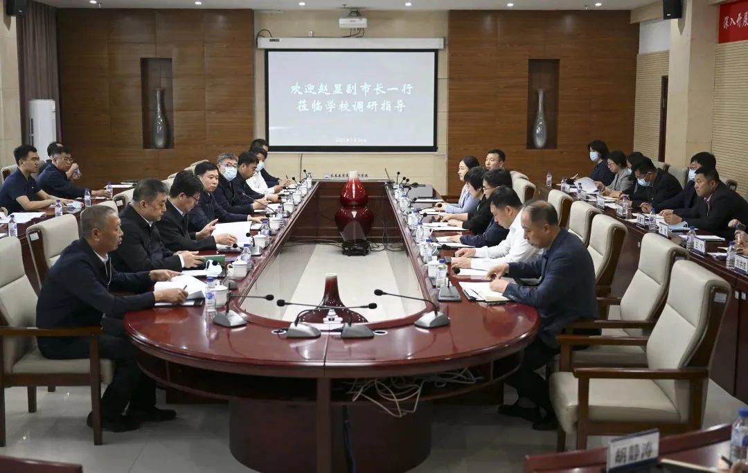5月24日,长春市副市长赵显一行莅临我校调研指导。市政府一级巡视员王希田、市教育局局长崔国涛、市卫健委主任王维学、市发改委副主任付军、市财政局副局长王绍英、市教育局副局长张德文、市政府办公厅文教办主任罗建强、市财政局教科文处处长薄福元等参加调研。学校领导班子,各处室、学院负责人参加了座谈会。