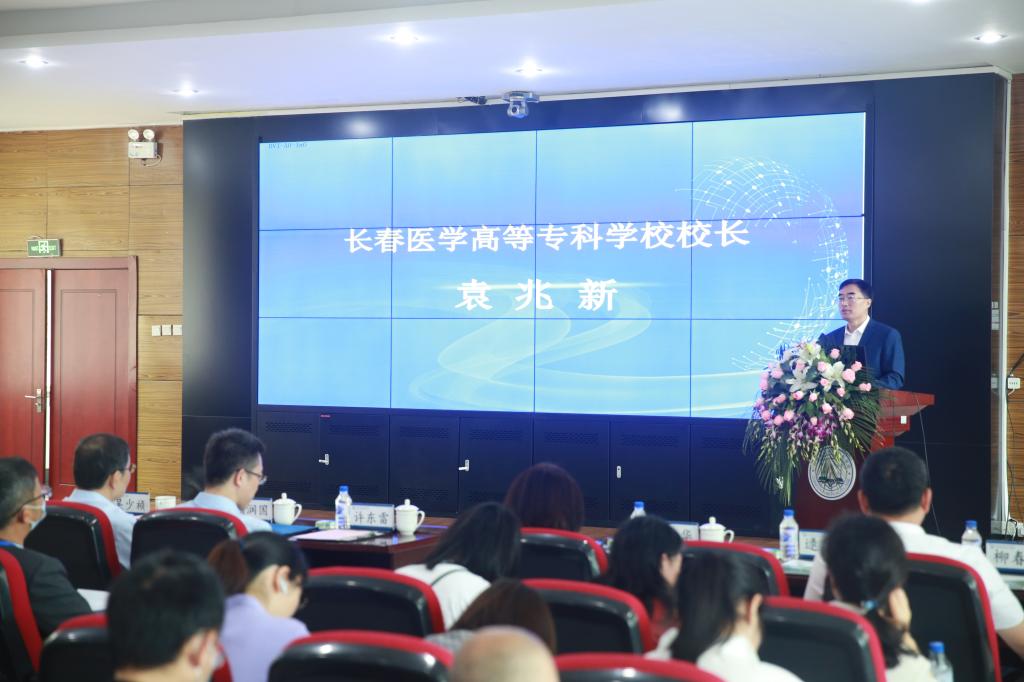 袁兆新在致辞中对参会的各位领导和专家的莅临表示热烈欢迎。他表示,这次会议是全面贯彻立德树人思想,提炼专业知识体系中所蕴含的思想价值和精神内涵,对培养全国高等职业院校食品类专业人才和预防医学专业人才具有十分重要意义的会议。他希望以此次会议为契机,我校教师们能向各位专家学习借鉴,积极参加中国医药科技出版社教材编写。
