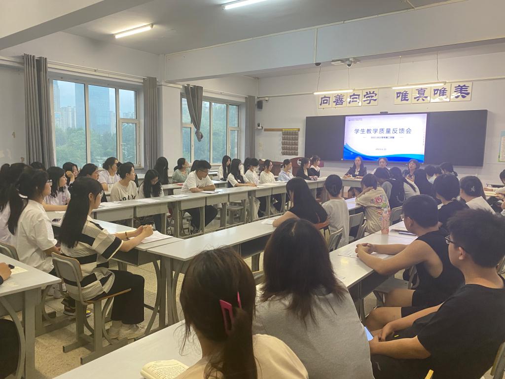 为了切实抓好教学常规管理,加强对全体任课教师的各个教学环节的监督、检查,全面了解全校教学运行情况,及时发现和改进教学中存在的问题与不足,6月20日下午,我校在善学楼1219教室召开了23年春季学期学生教学反馈会。副校孙莹、总督学周银铃、教务处副处长张义英,教务处相关人员、22级各个班级学委参加了此次会议,会议由教务处处长张虹主持。