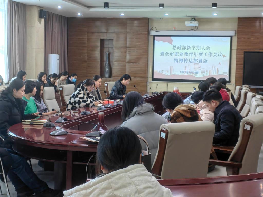 2月26日上午,思政部在善教楼二楼会议室召开新学期全体教师大会暨全市职业教育年度工作会议精神传达部署会。副校长赵欣及思政部全体教师参会,会议由思政部主任刘力为主持。