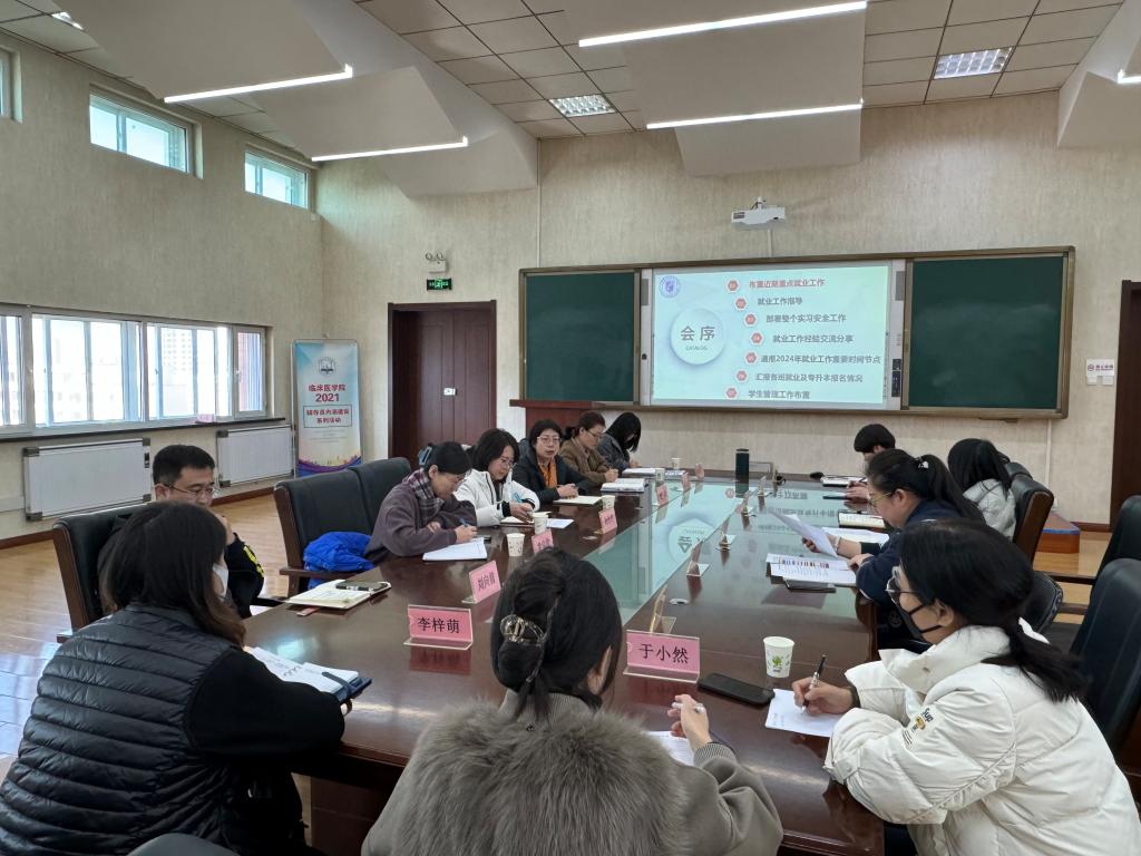 此次会议明确了学院就业工作人员及辅导员的工作目标和职责,为新学期院部工作顺利开展奠定了坚实的基础,通过本次会议的召开,学院学生管理工作及就业工作将在稳步推进中取得更大的成效。(文:郝孝波 图:韩莉 审核:赵冰 医学技术学院供稿)