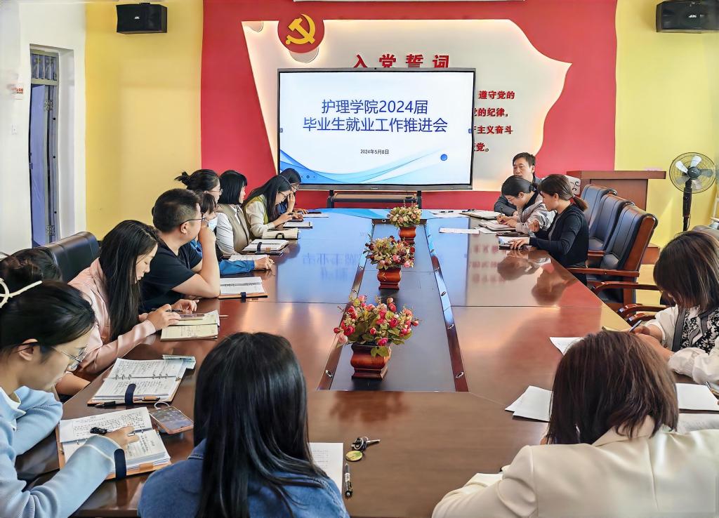 5月8日,护理学院在善学楼五楼会议室召开2024届毕业生就业工作推进会。护理学院院长宋宇,2024届毕业班辅导员以及学院全体教职工参会,会议由宋宇主持。