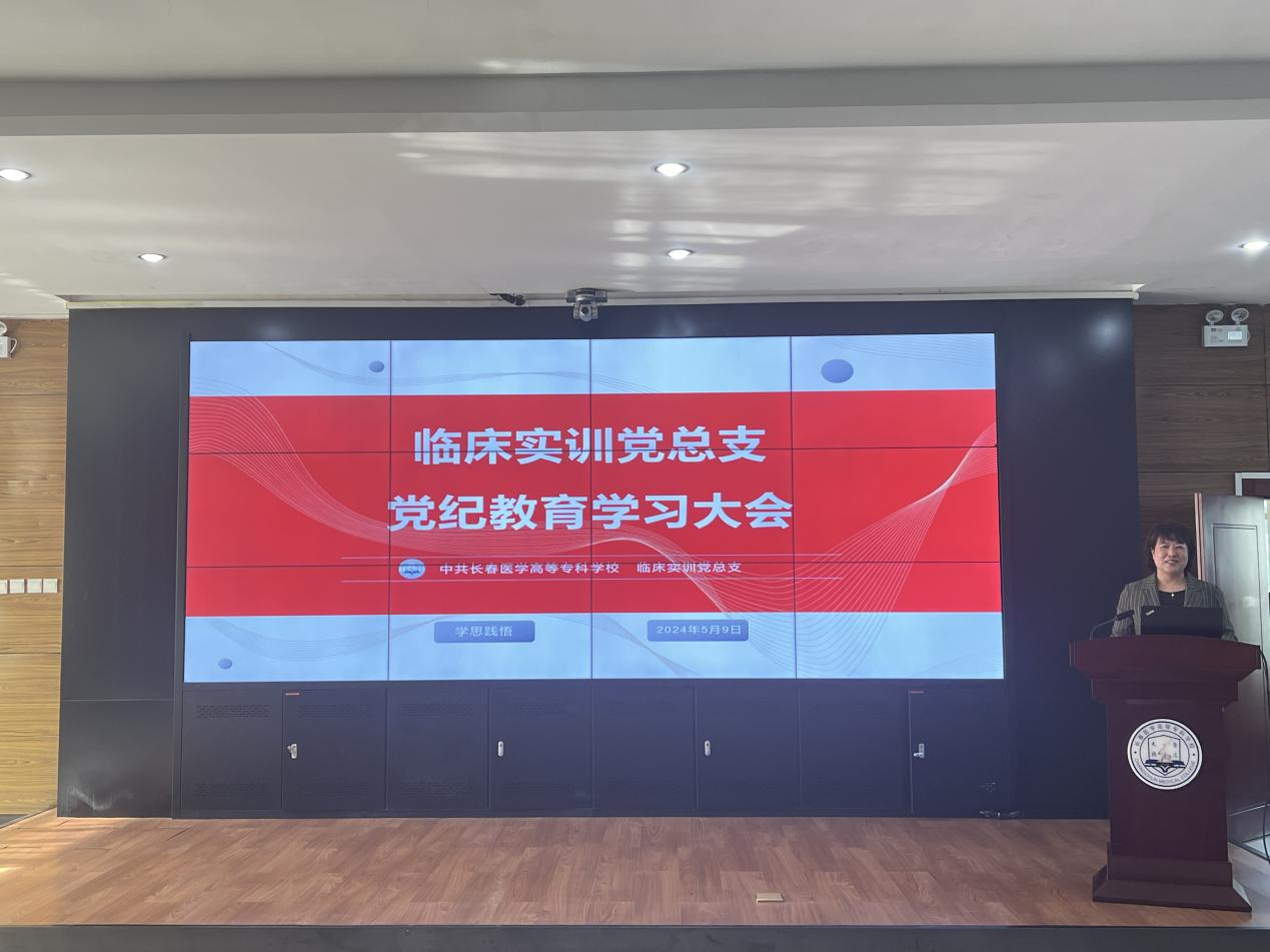 党建引领夯基础,凝心聚力促发展。为深入贯彻落实《长春医学高等专科学校党纪学习教育实施方案》、学校2024年党建工作会议精神和党总支书记讲党课要求,5月9日临床实训党总支在善教楼二楼报告厅召开全体党员大会暨党纪教育学习会。副校长赵欣及全体无课党员参加会议,会议由临床实训党总支书记张虹主持。