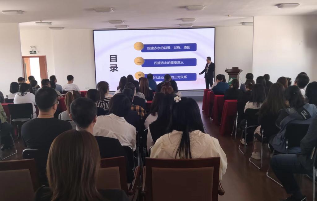 为不断拓宽社会培训途径,学期初,成人教育部走入长春人民药业集团有限公司,探讨学校与企业在员工培训方面的深入合作,并达成初步合作意向。5月9日,继首场经济学类培训之后,学校再赴人民药业开展培训,思政部郭文奇老师以“从四渡赤水看现代企业管理”为主题,带领员工重温历史关键节点,以史为镜,助力企业发展。