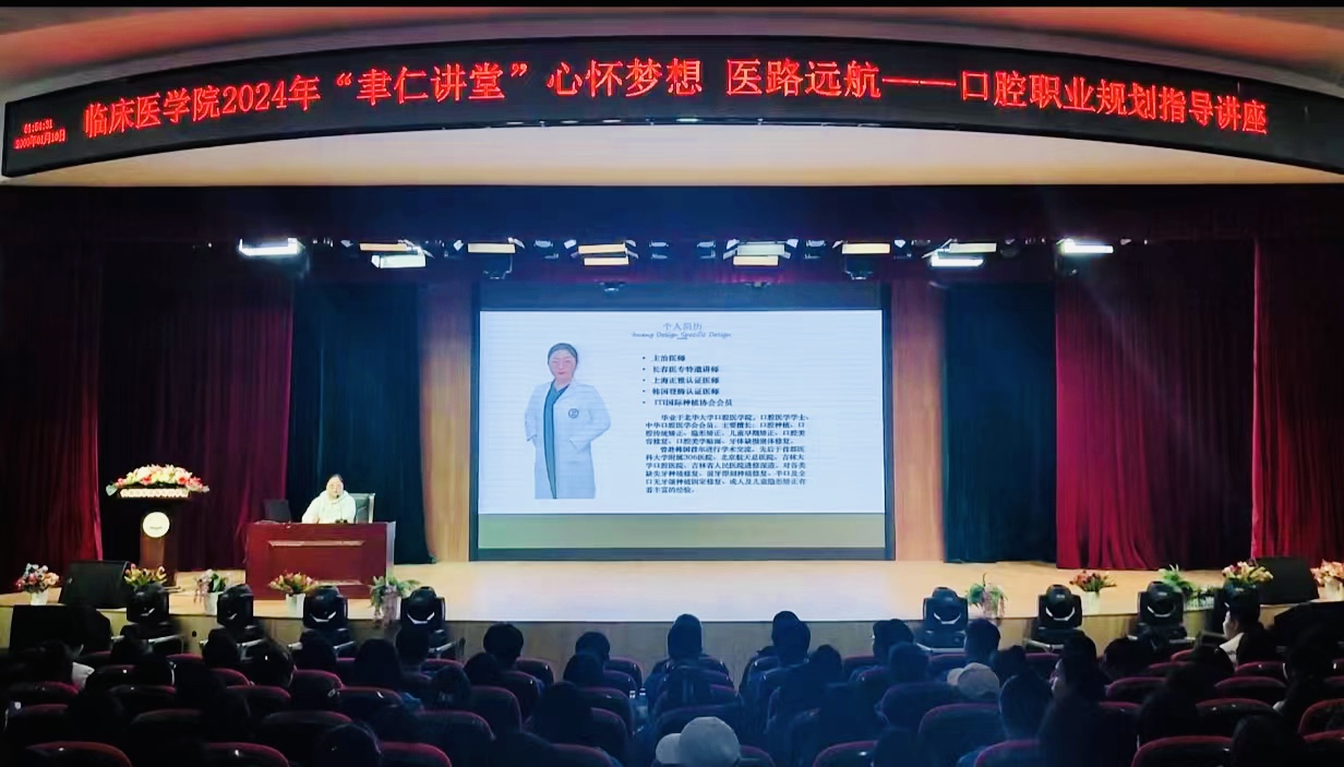 讲座邀请我校首批参加口腔医学专业专升本考试并被北华大学录取、现就职于长春市爱馨口腔的贾淋淇为全体口腔医学专业在校生分享口腔职业规划路上的宝贵经验。贾淋淇从自身经历出发,围绕口腔专业的行业薪资待遇及学历现状进行了分析,阐述了升本深造和就业的利弊;提出求职前应做好专业知识储备和基础临床操作能力的准备,强调了终身学习和灵活应变能力在职场中的重要性。并结合实际临床案例讲述了实习阶段应该重点训练的技能和能力,引导同学们意识到培养临床习惯、掌握临床操作技能和开拓临床视野对于未来职业发展的重要性。贾淋淇还和她的团队成员以多年的工作经验和成功的临床案例为与会同学们树立了行业自信心,让大家对于尽早完成职业规划有了更为直观的认识。