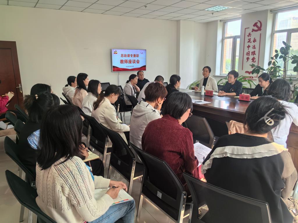 为进一步贯彻落实习近平总书记关于新时代学校思政课建设的重要指示精神,落实立德树人根本任务,加强思政课教师队伍建设,切实提高思政课的教学质量和实效,5月28日下午,思政部在善教楼五楼会议室召开思政教师座谈会。党委书记杜影、副校长赵欣、思政部主任刘力为和全体专兼职思政课教师出席本次座谈会。