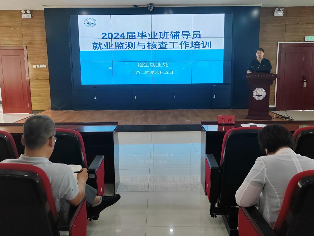 6月5日中午,学校在善教楼二楼报告厅召开2024届毕业班辅导员就业监测与核查工作培训会,副校长刘洋,各学院负责人、就业干事及全体毕业班辅导员参加了会议。