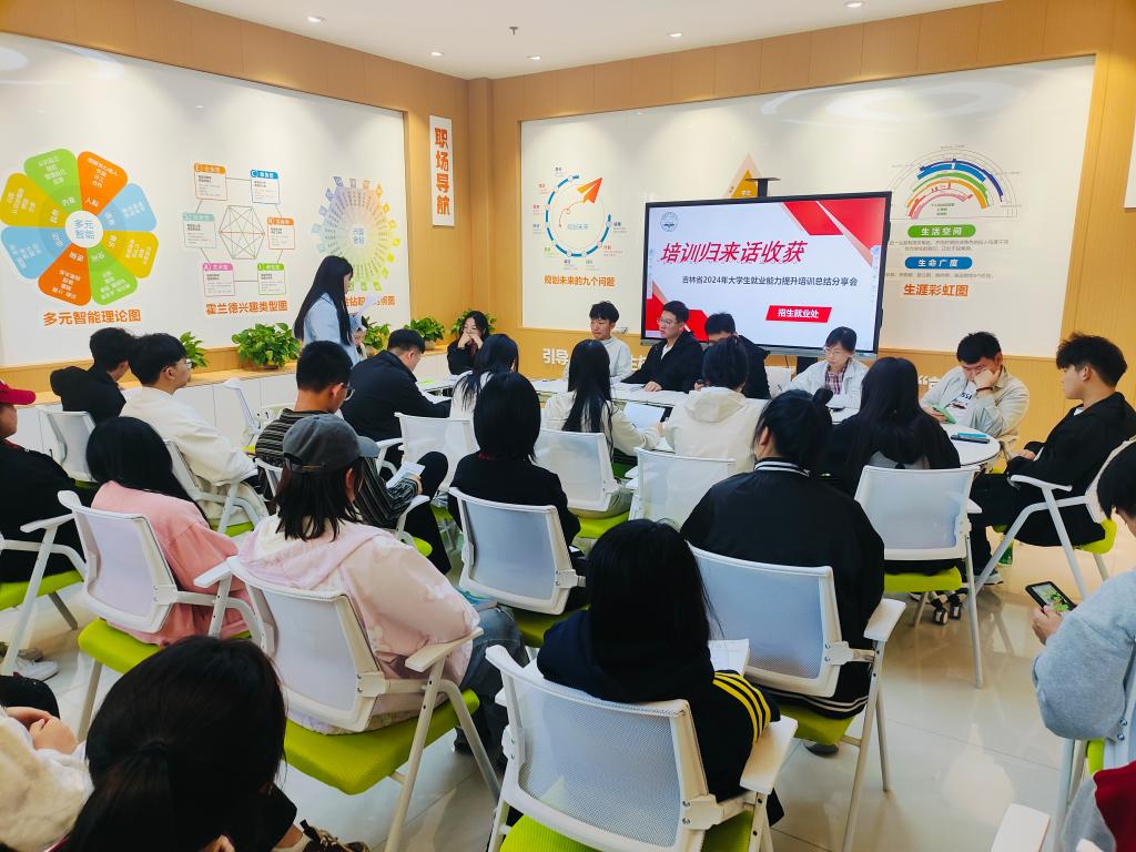 9月8日至9月24日,我校共组织60名学生分两期参加了吉林省“双困学生”就业能力提升培训,为巩固和扩大培训效果,促进学生间相互交流学习,9月27日中午,招生就业处在善教楼大学生就业创业指导服务站召开了以“培训归来话收获”为主题的总结分享会,12名获得“优秀学员”称号的2023级参训学生及部分2024级学生代表参加了会议。会议由招生就业处就业科副科长袁宝欣主持。