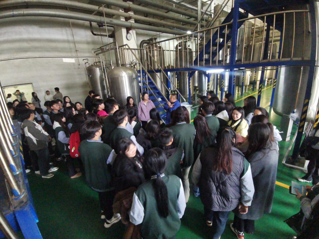 公司人力资源部岳智向师生们详细介绍了公司的发展历程、企业文化、经营理念、企业精神、未来发展方向等情况,并带领大家参观了先进的提取车间和咳喘糖浆生产车间,让大家更直观地了解公司的运营状况和生产流程。