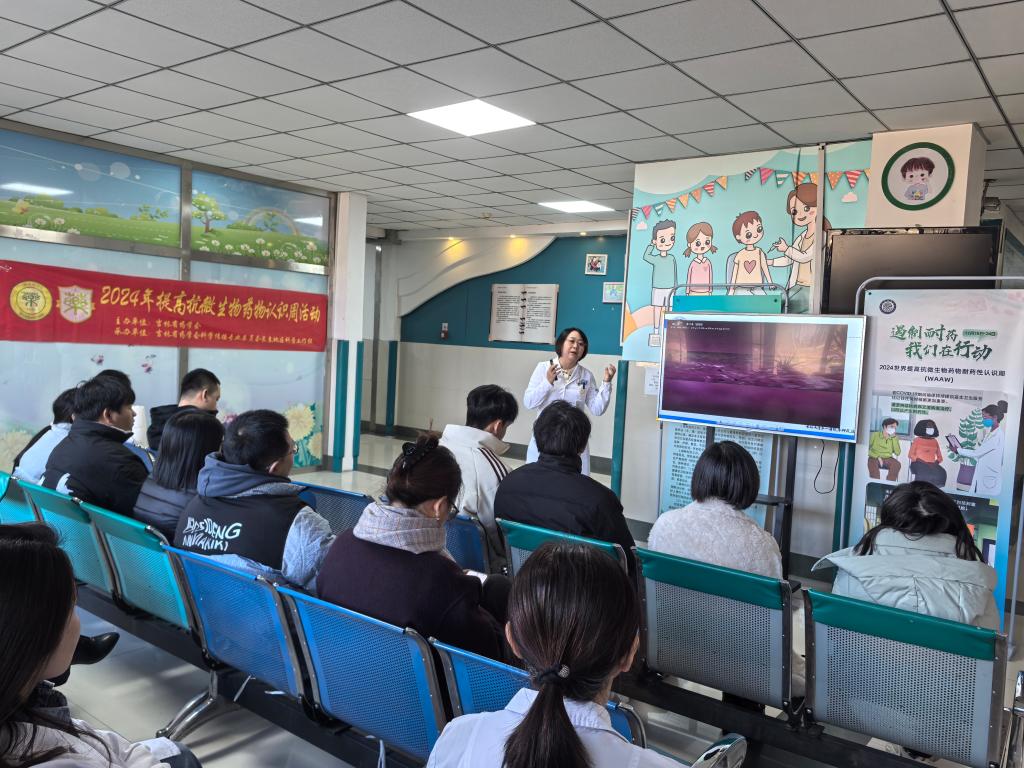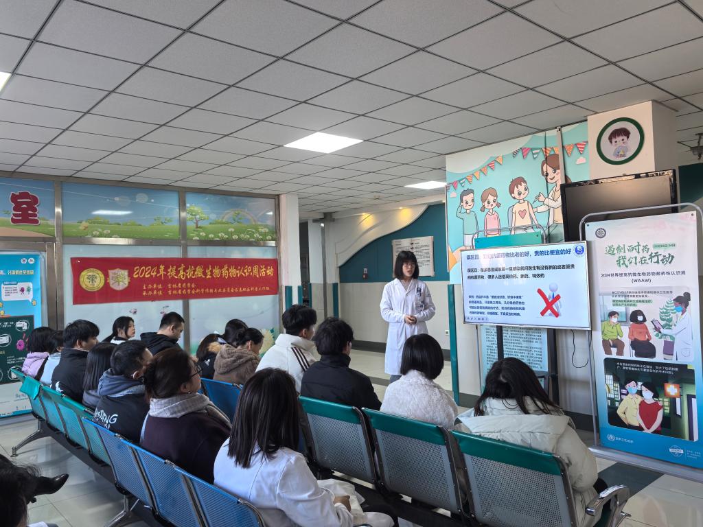 活动伊始,吉林大学第一医院乐群院区药学部张红梅老师以《常见抗菌药物用药误区》为题,用生动的语言、丰富的案例,从什么是抗菌药物开始,逐步深入地讲解了怎样识别抗菌药物以及抗菌药物不等于消炎药、感冒就用抗菌药等用药八大误区。张老师的讲解细致入微,让社区居民对抗菌药物的使用有了更清晰的认识,避免了在日常用药中可能出现的误区。随后,吉林大学第一医院乐群院区微生物室马淑红老师以《细菌感染怎么查?》为题,从不同血象指标入手,深入浅出地讲解了细菌感染和病毒感染的不同表现,让社区居民能够通过简单的指标判断自己感染的病原体类型,为后续的治疗提供了重要的参考依据。