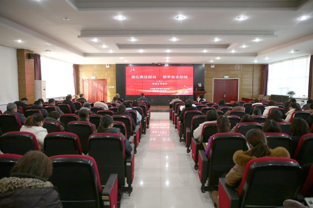 为深入贯彻习近平总书记关于安全生产的重要指示,传达省教育厅、省卫健委安全生产会议精神和胡玉亭省长主持召开的全省安全生产警示教育会议精神,筑牢校园安全稳定防线,12月13日下午,学校在善教楼二楼报告厅召开“强化责任担当 筑牢安全防线”安全会议。学校党委书记杜影、党委副书记、校长袁兆新、副校长孙莹,党委副书记高洪宇,副校长刘洋,全体科级以上干部(含教研室主任)、参加会议。会议由副校长张兴国主持。