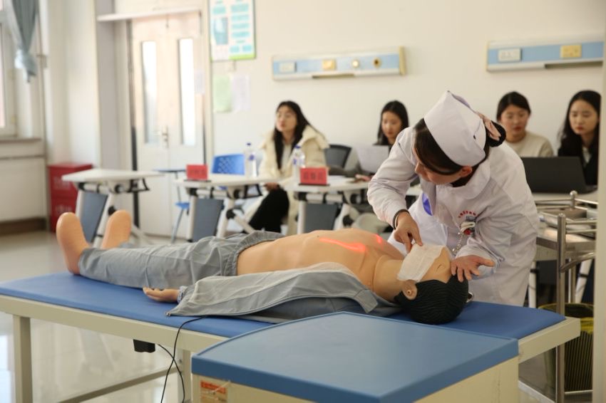 竞赛初赛由临床医学院和护理学院组织开展,37位相关专业45岁以下专兼职教师参加比赛。初赛设置临床医学、护理2个赛道,每赛道设2个考站,考核项目包括单人徒手心肺复苏术、腹部手术切口换药技术、静脉输液技术等。竞赛决赛由教务处组织开展,考核项目为单人徒手心肺复苏术。学校聘请了长春市人民医院护理部主任王洪丽、心内二科主任徐淑清、总督学周银玲、教务处处长孙晓琪、社区卫生服务中心主任张春英五位专家共同担任决赛评委,22位青年教师参加比赛,副校长孙莹莅临现场进行观摩。