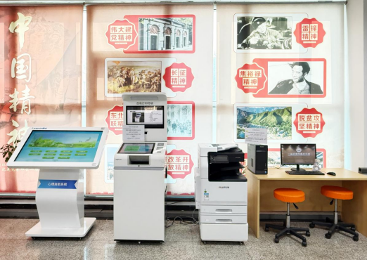 每天8:00-20:00开放,设置自助终端设备、打印复印机、心理自助服务一体机,可实现“在校证明自助打印”“免费打印复印”“活动室预约”和“心理自助”四项功能。