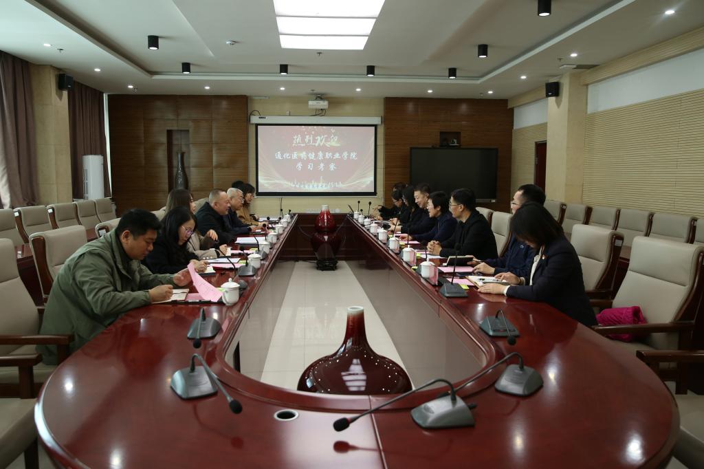 3月28日上午,通化医药健康职业学院党委书记车明亮一行7人来我校调研交流。学校党委书记杜影、校长袁兆新、副校长刘洋及相关职能部门负责人参加调研交流会。