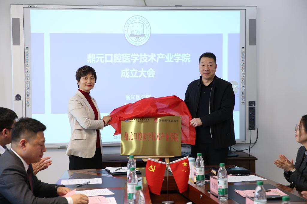 为搭建高质量校企合作平台,培养符合企业需求的专业技能人才,加速推进医学教育数字化转型和智能升级,4月23日上午,我校与吉林省鼎元牙科科技有限公司共建的鼎元口腔医学技术产业学院成立大会在善教楼十楼会议室召开。校长袁兆新、副校长刘洋、教务处处长孙晓琪、吉林省鼎元牙科科技有限公司总经理邹文秀及院校双方多名代表参加了会议,会议由临床医学院教学负责人钱科颖主持。