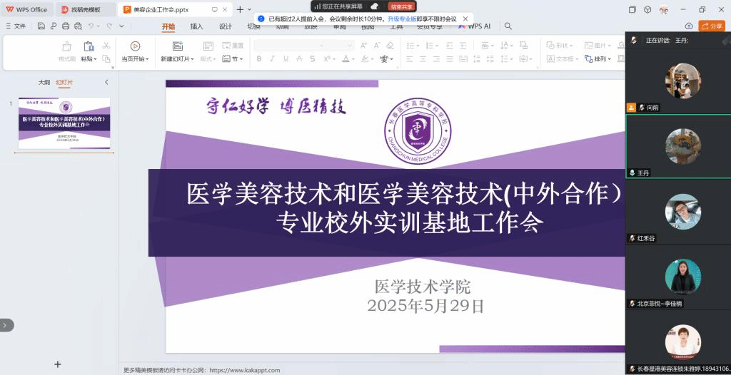 为贯彻落实职业教育产教融合精神,全面规范实习全过程管理,5月29日学院通过线上会议形式组织召开医学美容技术专业实习管理工作专题会议。学院副院长王丹、实习干事刘向前、专业辅导员刘达及2023级全体医学美容技术专业学生参会,吉林省靓范医生医疗美容有限公司等12家合作企业代表受邀出席。