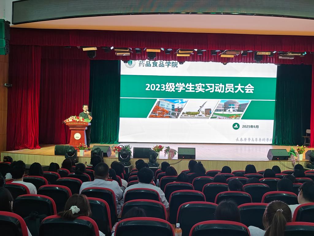 6月9日下午,药品食品学院在图书馆报告厅召开2025年度实习动员大会,全面部署2023级学生专业实习工作,助力学生顺利进入实习阶段。药学部教学负责人汪岩、学生工作办公室相关人员、2023级辅导员及全体学生参会。会议由学办主任董凤鸽主持。