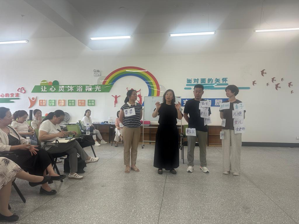 在互动环节中,活动迎来高潮,教师张天雷、焦彩娟、李玲积极参与,通过模拟工作场景各个场景的角色关系,给教师们提供了直观形象的教学观感。随后,教师们进行了分组讨论,结合自身实际,教师们各自分享了在工作、家庭等方面的压力感受。在了解压力来源的基础上,俞桦老师进一步引导教师们学习了应对压力的方法。