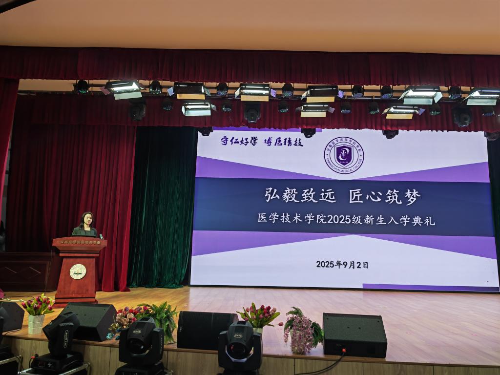 9月2日,医学技术学院2025级新生入学典礼在校园内温情启幕。本次典礼以“弘毅致远 匠心筑梦”为主题,学院院长赵冰、党总支副书记胡皓月、图书馆王为老师,以及全体专兼职辅导员老师们出席活动,与 322 名新生共同见证医学求学之路的启航时刻。典礼由学院学生办公室主任张添主持。
