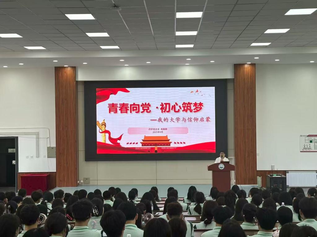 高雅静为新生作题为《青春向党,初心筑梦》的信仰启蒙教育。她结合新时代发展要求,通过学院优秀学子案例,激励同学们要树立远大理想,坚定政治信仰,科学规划大学生涯。特别强调了积极向党组织靠拢的重要意义,她鼓励新生:“要以青春之我、奋斗之我,在医药健康领域书写无愧于时代的答卷。”