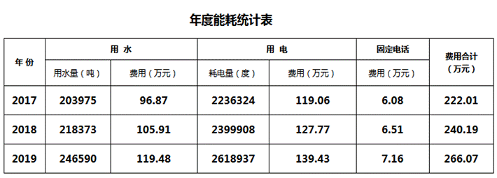 为加快文明校园建设,落实学校2020年节能减排目标,增强广大师生的节能意识,现将近三年学校耗能情况向全校师生公示。同比年均水费增长9.93%、电费增长7.59%、电话费增长7.83%。节约刻不容缓!