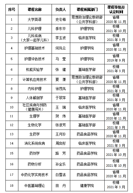 按照《校级精品在线开放课程建设应用通知》(长医高专教字〔2019〕1号)和《关于开展2021年秋季学期校级精品在线开放课程评审验收》文件要求,学校组织了2021年秋季学期校级精品在线开放课程评审验收工作。有两门课程申报校级精品在线开放课程,经过评审顺利通过,拟定为校级精品在线开放课程。有18门校级及以上精品在线开放课程申报应用,经过评审全部合格。现将名单公示如下。