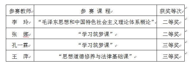 荣誉的获得体现了我校教师教学方法和教学手段的创新思维与优秀成果,希望全校教职工以此为契机,不断推进教学方法改革,进一步提升全校整体教育教学质量。(人文社科部供稿)