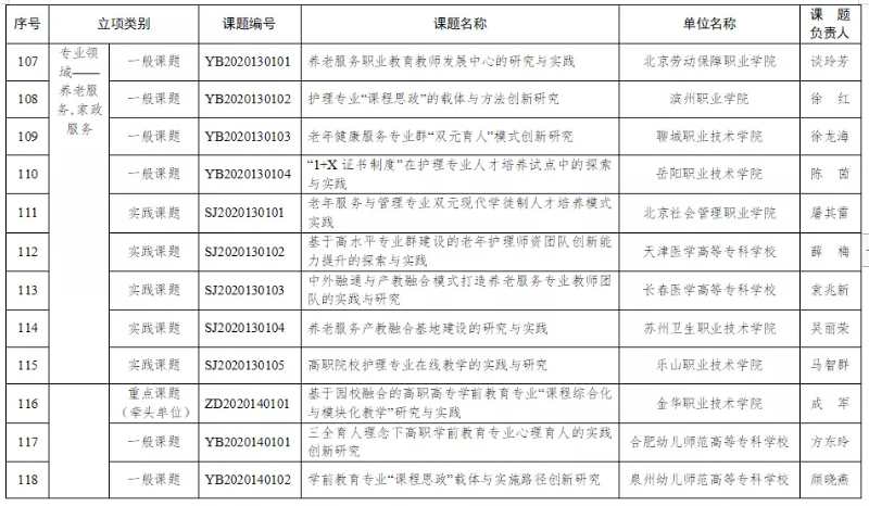 近日,教育部公布了首批国家级职业教育教师教学创新团队课题研究项目,我校申报的课题《中外融通与产业融合模式打造养老服务专业教师团队的实践与研究》被评选为“养老服务、家政服务”类实践课题准予立项。这是我校开展养老服务专业教育教学领域工作的又一项重要突破,对学校的专业建设、师资队伍建设、教科研工作具有积极的促进和推动作用。