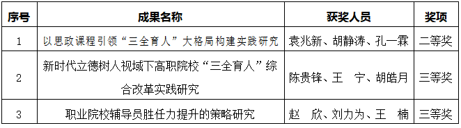 近年来,在学校党委的坚强领导下,学校始终把“立德树人”作为教育培养目标,深入贯彻落实教育部等八部门印发的《关于加快构建高校思想政治工作体系的意见》,推动实施高校思想政治工作质量提升工程,推进构建“三全育人”工作格局,已相继形成了一批思政工作优秀研究成果。