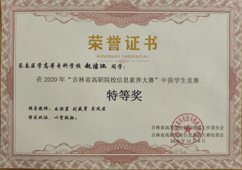 5.吉林省高职院校信息素养大赛学生竞赛“特等奖”