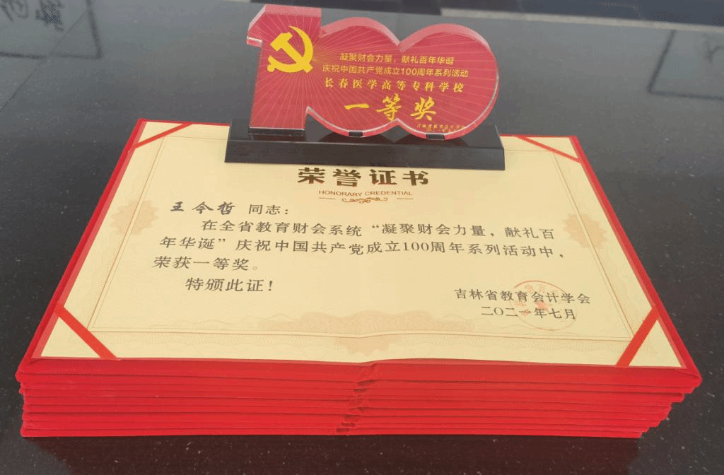 在吉林省教育会计协会举办的“凝聚财会力量,献礼百年华诞”庆祝建党100周年文艺作品征集活动中,我校喜获会员单位团体一等奖,也是全省唯一获得一等奖的专科院校。
