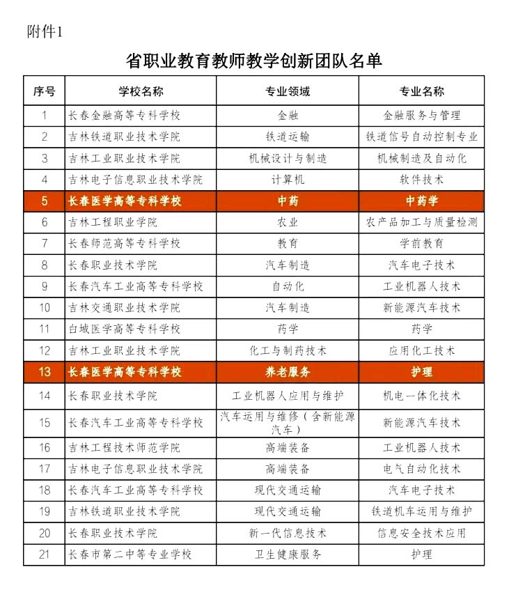 10月30日,吉林省教育厅公布了省职业教育教师教学创新团队名单,我校中药学专业和护理专业榜上有名。