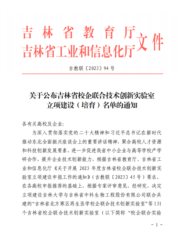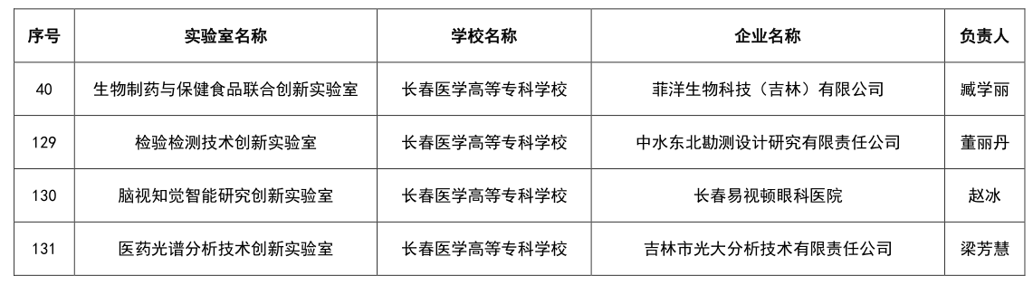吉林省校企联合技术创新实验室立项培育名单