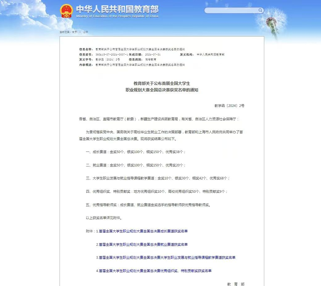 由教育部主办的首届全国大学生职业规划大赛全国总决赛获奖名单近日在教育部官网公布。