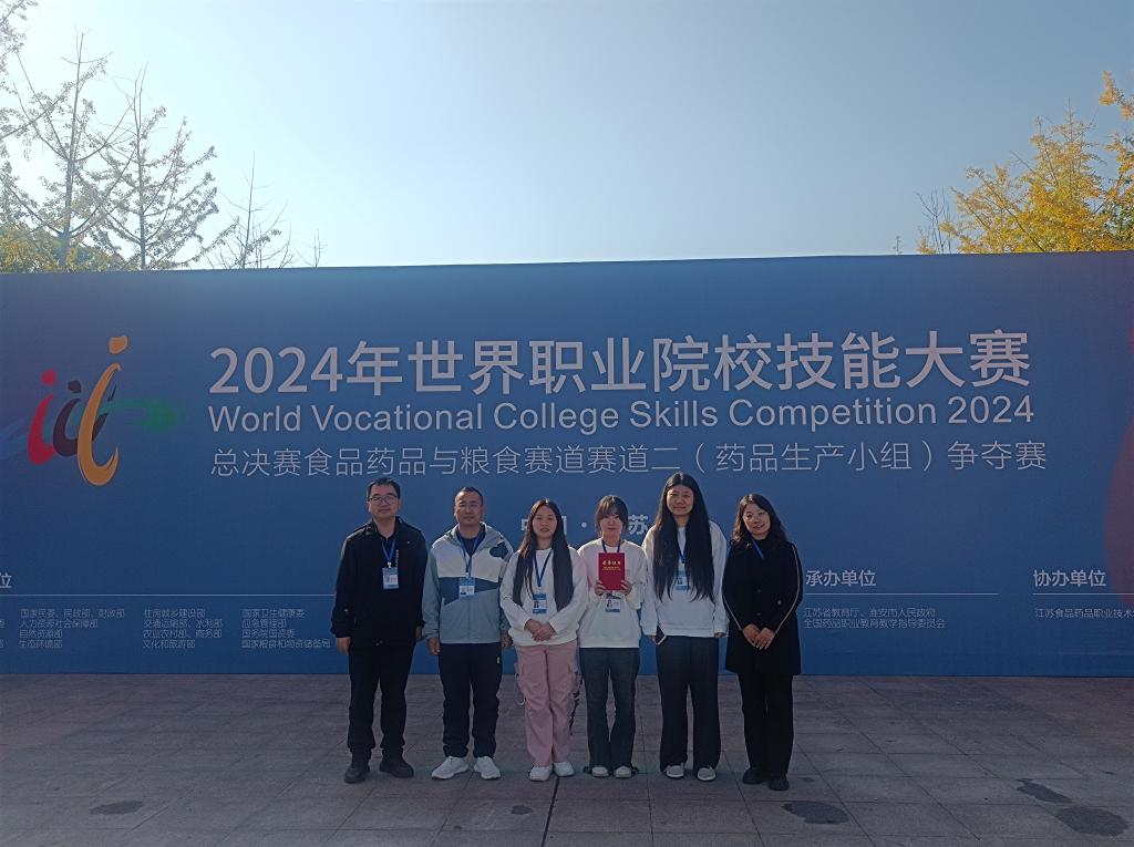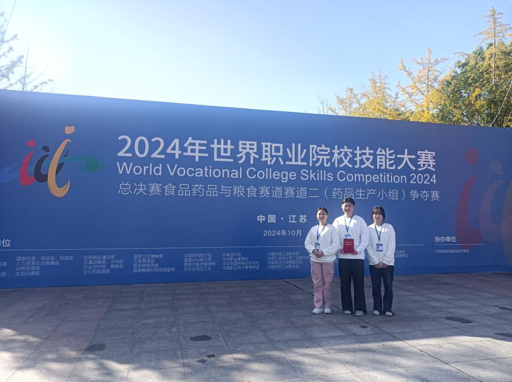 10月25至29日,2024年世界职业院校技能大赛总决赛争夺赛药品与粮食赛道二(药品生产小组)争夺赛在江苏食品药品职业技术学院落下帷幕。我校参赛选手22级药学1班宋书慧、22级药学3班李子怡和23级药剂1班冯雨婷荣获团体铜奖。