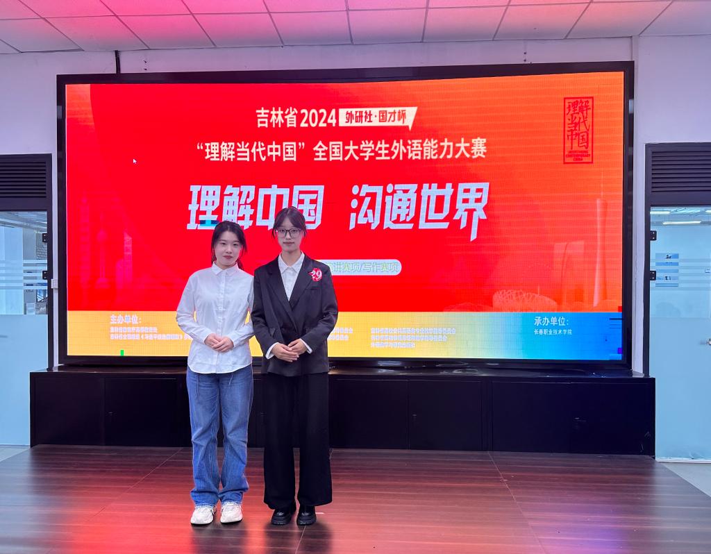 吉林省2024年“外研社·国才杯”“理解当代中国”外语能力大赛高职组职场英语挑战赛于10月26日和27日在长春职业技术学院举行。本次大赛设有演讲大赛和写作大赛两个赛项,共有来自全省28所职业院校的140余名选手参加比赛。经过为期两天的激烈角逐,我校23级国护1班张淇昱和24级护理9班邵琦同学获得演讲大赛二等奖,24级中药2班王阳和24级护理1班崔冰晴获得写作大赛二等奖,24级针推1班杨晨获得写作大赛三等奖。