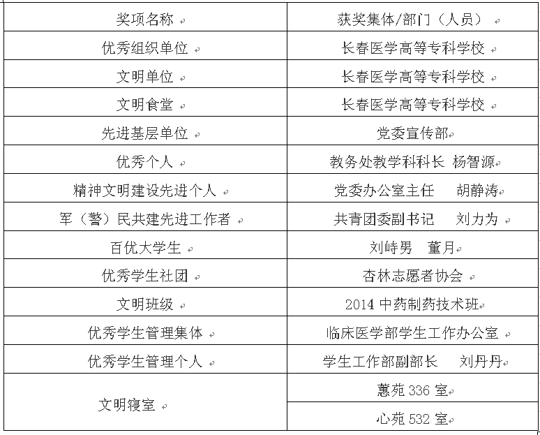 高校文明杯竞赛活动是在长高校展现师生精神风貌、展示精神文明建设成果的平台,是长春市创建全国文明城市的“十杯赛”活动之一。希望获奖的集体和个人珍惜荣誉,再接再厉,努力获得精神文明领域的更大成绩。