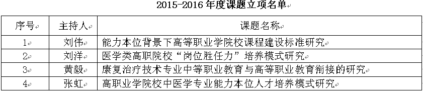 本次立项是我校首次参与国家卫生计生委能力建设和继续教育中心课题立项活动。学校将继续加强课题申报的指导,争取在下一年度取得更好的成绩。希望课题负责人严格按照预定计划组织课题组成员开展研究,按时、保质结题,为我校在国家级层面赢得良好科研形象做出不懈努力。(教务处供稿)