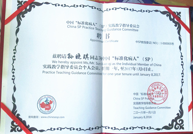 经我校申报,SP教指委审核,我校有幸成为SP教指委副主任委员单位,副校长刘伟任SP教指委副主任委员,临床医学部内科教研室主任孙晓琪任SP教指委会员。