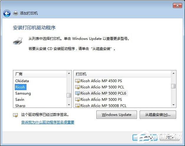 4、选好打印机之后会进行通信和驱动安装程序,Windows7操作系统在内部已经内置了大量的打印机驱动程序,所以如果不是极其冷门的产品,会在打印机驱动中找到你所要的;