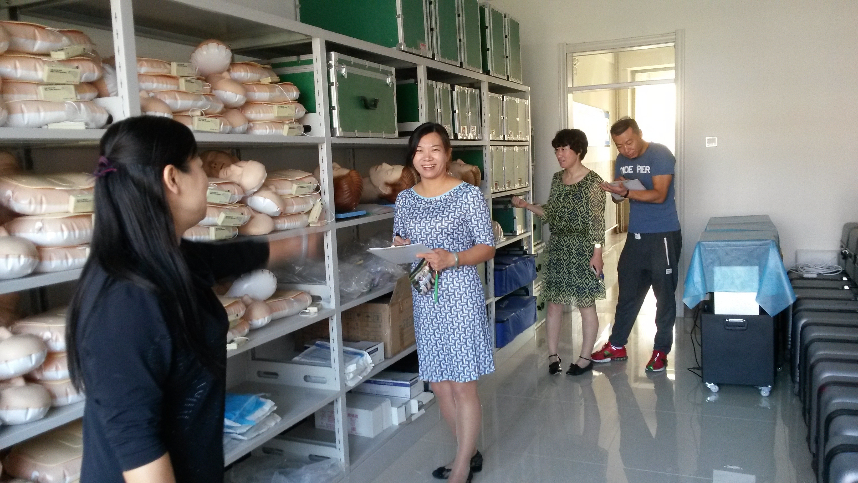 9月1日上午检查组首先对二楼、三楼的实训室、准备室、仓库等进行全面检查。检查过程中,主任王春梅对实训室的多媒体设备、模拟人、实验台等的卫生进行重点检查,确保新学期教学环境整洁,保证教学秩序顺畅运行。对于多媒体设备箱、窗台、暖气片、窗框的灰尘多等疏漏要求检查组成员进行记录,并督促马上进行整改