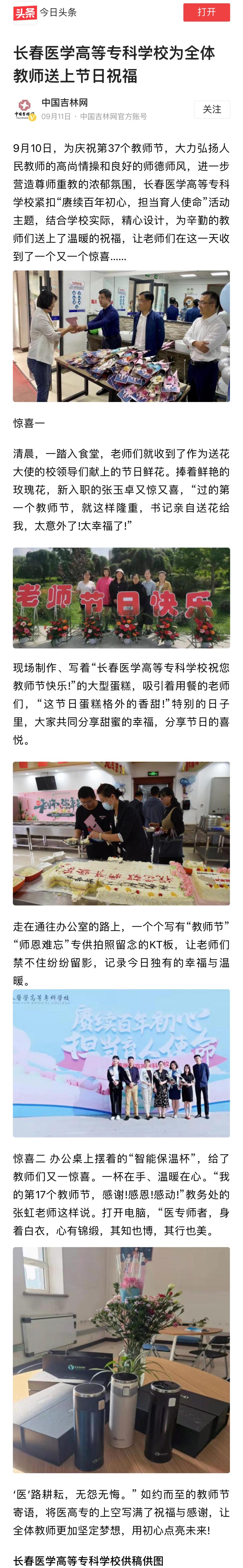 长春医学高等专科学校为全体教师送上节日祝福