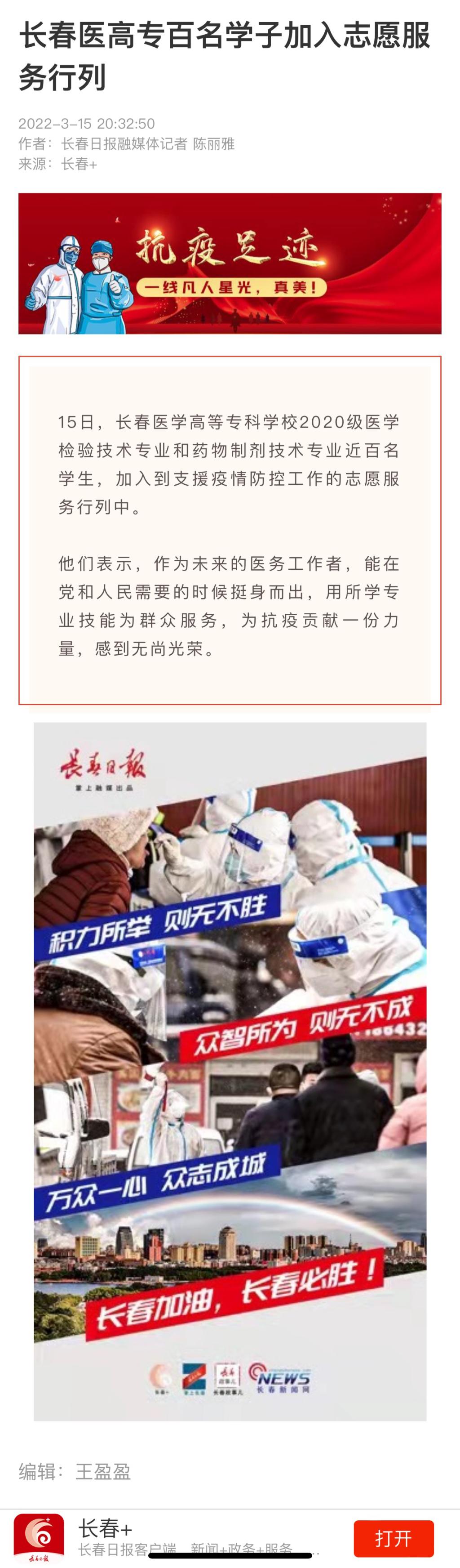 长春医高专百名学子加入志愿服务行列
