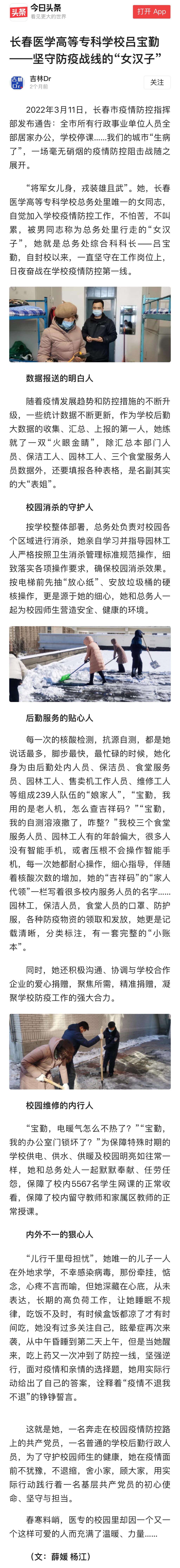 长春医学高等专科学校吕宝勤——坚守防疫战线的“女汉子”